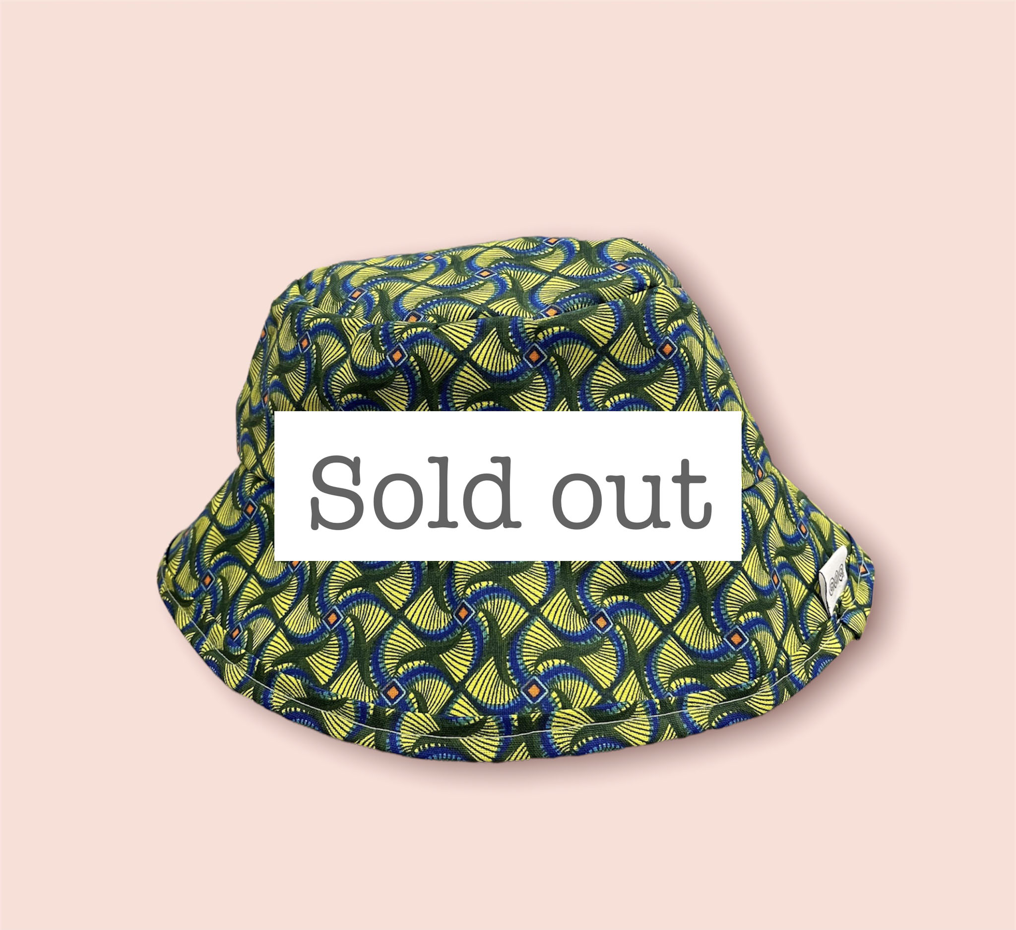Couleur : vert, jaune, bleue. Côté réversible vert. Motifs wax